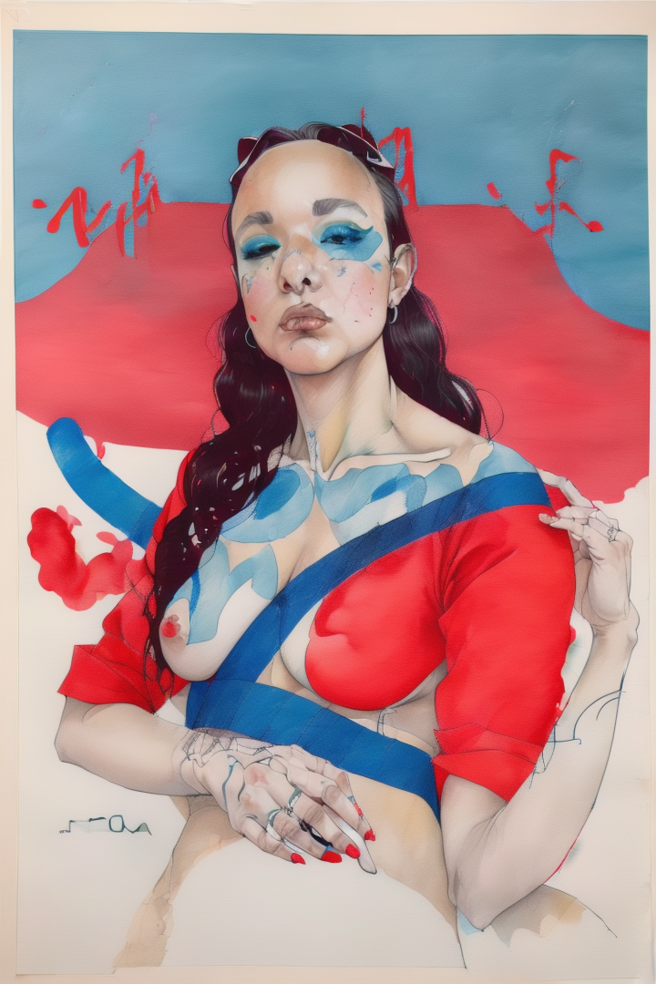 “(noma:1.8),(artwork) hand drawn pencil sketch,(lineart),outline,(expressive),sexy (nsfw),argentina,gouache,red blue,,”