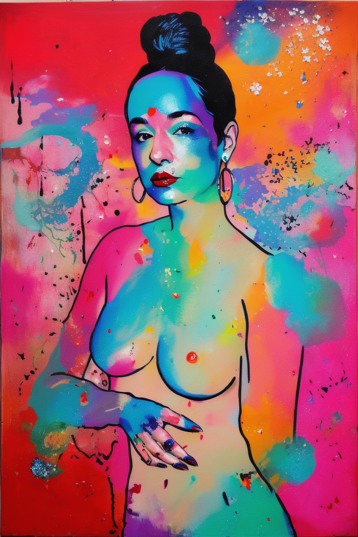 “(noma), (artwork), painting of a woman, sexy, lipstick, particles”