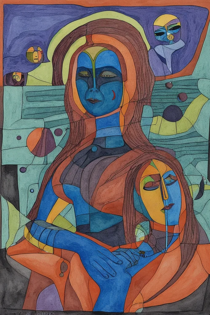 “xul solar,no humans,woman,surreal,abstract,geometric,gouache,”