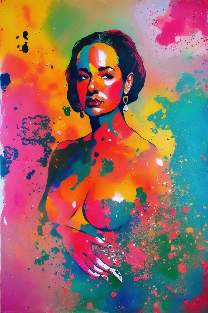 “(noma), (artwork), painting of a woman, sexy, lipstick, particles”