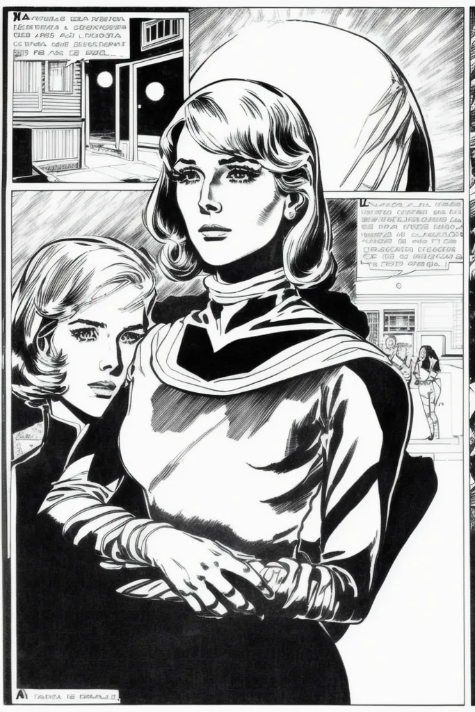 “a woman, eternauta, comic, silluete, black and white, left-to-right-manga, monochrome”