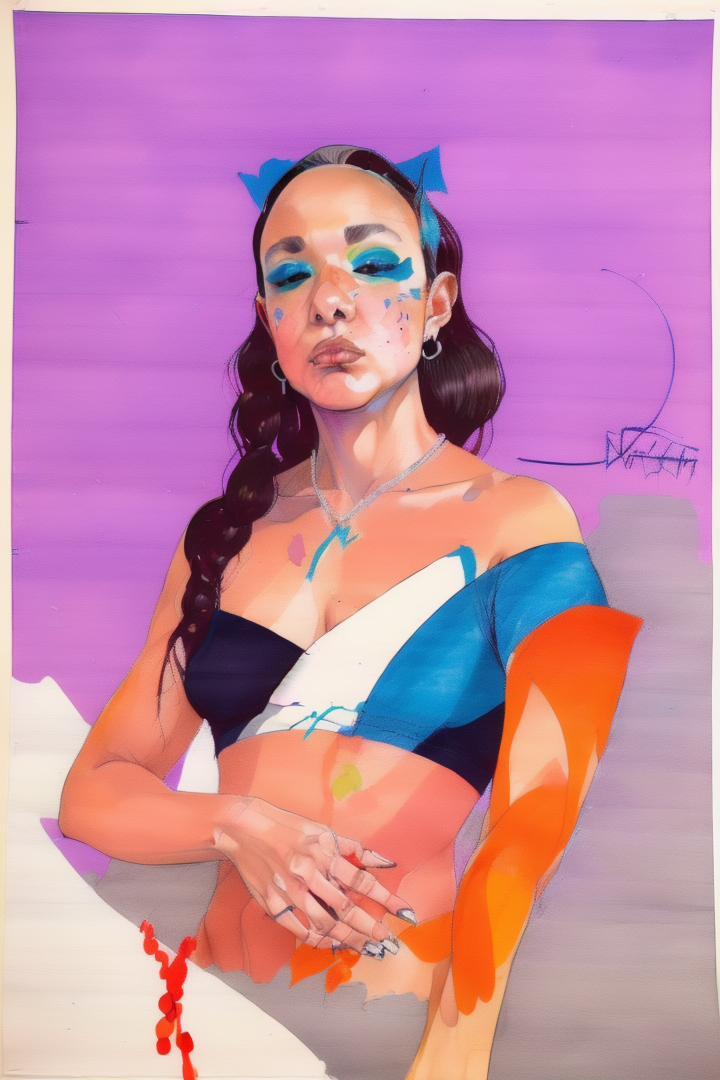 “(noma:1.8),(artwork) hand drawn pencil sketch,(lineart),outline,(expressive),sexy (nsfw),argentina,gouache,orange purple,,”