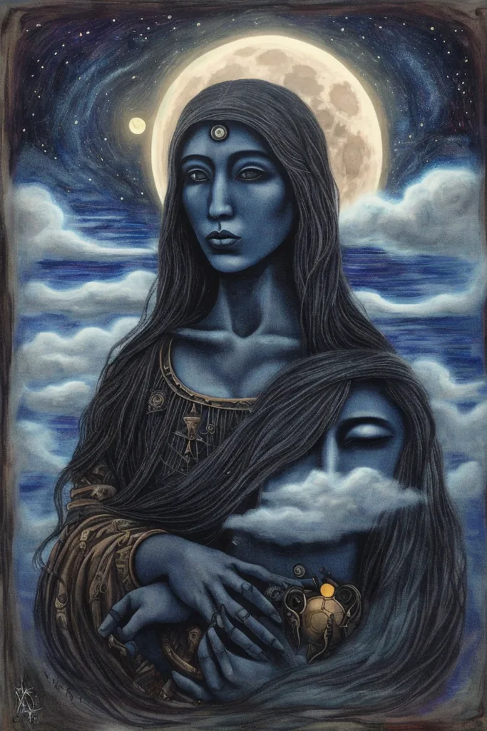 “xul solar, no humans, woman, surreal, abstract, moon, zodiac, parody, clouds”